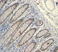 Immunohistochemical analysis of paraffin-embedded human colon tissue using anti-Lipin1 RabMAb (Cat. APR08236G).