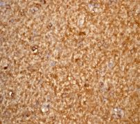 B. Immunohistochemical staining of paraffin-embedded human brain using anti-MAPILC3A RabMAb (Cat. APR07013G). |
