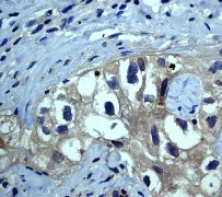 B. Immunohistochemical analysis of paraffin-embedded human breast carcinoma using anti-MEKK2 RabMAb (Cat. APC00077G). |