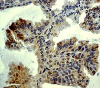 B. Immunohistochemical analysis of lung adenocarcinoma using anti-MKK4 (C-term) RabMAb (Cat. APR17370G). |