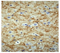B. Immunohistochemical analysis of paraffin-embedded human brain tissue using anti-NF-M RabMAb (Cat. AMM06640G). |
