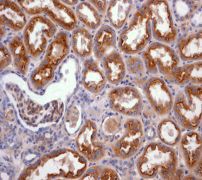 B. Immunohistochemical analysis of paraffin-embedded human kidney tissue using anti-Neuropilin 1 RabMAb (Cat. AMM06648G). |