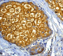 B. Immunohistochemical analysis of paraffin-embedded human Breast carcinoma using anti-NF-kappaB p65 RabMAb (Cat. APR07139G).