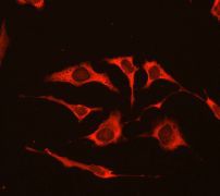 Immunofluorescent staining of HeLa cells using anti-Peroxiredoxin 6 RabMAb (Cat. APR09050G). |