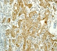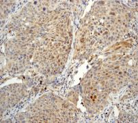 Immunohistochemical analysis of paraffin-embedded human lung carcinoma tissue using anti-PHD1 RabMAb (Cat. APR09111G). |
