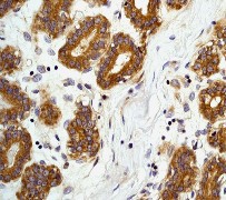 B. Immunohistochemical analysis of paraffin-embedded human normal breast tissue using anti-PKA RII (C-term) RabMAb (Cat. AMR09297G).