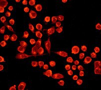 C. Immunofluorescent staining of HeLa cells using anti-PKA RII (C-term) RabMAb (Cat. AMR09297G). |