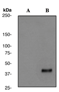 A. Western blot analysis on HeLa cell lysates using anti-Phospho-PKA C-gamma (pT197) RabMAb (Cat. AMR09299G), 1:5000 dilution. Cells were either (A) untreated (B) treated with calyculin A.