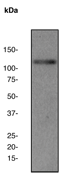 A. Western blot analysis on HeLa cell lysates using anti-PKC mu RabMAb (Cat. AMR09301G), 1:1000 dilution. |