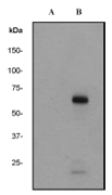 A. Western blot analysis on HeLa cell lysates using anti-phosho PKR (pT451) RabMAb (Cat. AMM07227G), 1:2,000 dilution. Cells were either (A) untreated (B) treated with IFN-alpha and Calyculin A. |
