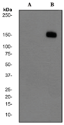 A. Western blot analysis on Jurkat cell lysates using anti-Phospho- PLC gamma 1 (pY783) RabMAb (Cat. AMR09360G), 1:10,000 dilution. Cells were either (A) untreated (B) treated with pervanadate. |