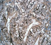 B. Immunohistochemical staining of paraffin-embedded human uterus carcinoma using anti-PP1 alpha RabMAb (Cat. AMR09423G). |