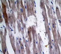 B. Immunohistochemical analysis of paraffin-embedded human muscles using anti-PP1alpha RabMAb (Cat. AMR09424G). |