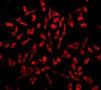 B.Immunofluorescent staining of HeLa cells using anti-Prostaglandin E Synthase 3 RabMAb (Cat. AMR09561G). |