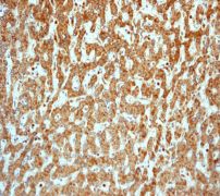 B.Immunohistochemical analysis of parafin-embedded human liver using anti-Gstk1 RabMAb (Cat. AMM05241G).