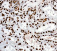 Immunohistochemical analysis of paraffin-embedded human kidney tissue using anti-ILF3 RabMAb (Cat. APR16834G). |