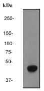 A. Western blot analysis on SH-SY5Y cell lysate using anti-PP2C-alpha RabMAb (Cat. AMM07264G), 1:2000 dilution.