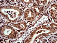 B. Immunohistochemical analysis of paraffin-embedded human gastric carcinoma using anti-PP2C-alpha RabMAb (Cat. AMM07264G).