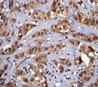 C. Immunohistochemical analysis of paraffin-embedded human breast carcinoma using anti-PP2C-alpha RabMAb (Cat. AMM07264G). |