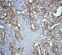 B. Immunohistochemical analysis of paraffin-embedded human thyroid gland carcinoma using anti-PTEN (C-term) RabMAb (Cat. AMR09598G). |