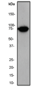 A. Western blot analysis on HeLa cell lysate using anti-Radixin RabMAb (Cat. AMM07508G), dilution 1:20,000.