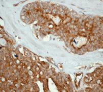 B. Immunohistochemical staining of paraffin-embedded human ovarian carcinoma using anti-Radixin RabMAb (Cat. AMM07508G). |