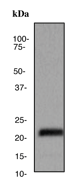 A. Western blot analysis on human brain lysate using anti-Rap 1 RabMAb (Cat. AMM07518G), dilution 1:500. |