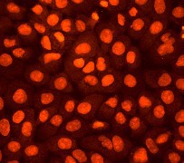 B. Immunofluorescent staining of A431 cells using anti-RSK-1 (pS380) RabMAb (Cat. AMM07677G). |