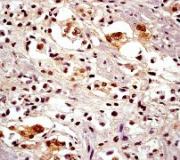 Immunohistochemical analysis of paraffin-embedded human prostate carcinoma using anti-Rsk3 RabMAb (Cat. AMM07684G).