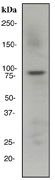 Western blot analysis on HeLa cell lysate using anti-RSK3 RabMAb (Cat. AMM07684G). |