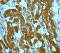 B. Immunohistochemical analysis of paraffin-embedded human muscles using anti-Phospho-MKK4 (pX80) RabMAb (Cat. AMM07753G). |