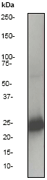 A. Western blot analysis on human serum membrane using anti-SAP RabMAb (Cat. APR13293G), dilution 1:1,000,000.