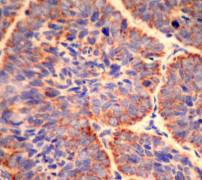 B. Immunohistochemical analysis of paraffin-embedded human skin cancer tissue using anti-Smac/Diablo RabMAb (Cat. APR10157G). |