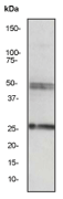 A. Western blot analysis on fetal liver membrane using anti-SHH (c-product) RabMAb (Cat. APR10205G), dilution 1:2000.