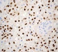 SOX2 is a member of the SRY-related HMG-box (SOX) family of transcription factors involved in the regulation of embryonic development and in the determination of cell fate. It is required for stem-cell maintenance in the central nervous system, and also regulates gene expression in the stomach (1). SOX2 is necessary for regulating multiple transcription factors that affect Oct3/4 expression. An essential function of SOX2 is to stabilize embryonic stem cells in a pluripotent state by maintaining the requisite level of Oct3/4 expression (2).