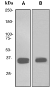 Western blot analysis on (A) NCCIT and (B) MCF-7 cell lysates using anti-SOX2 RabMAb (Cat. APR13483G). |