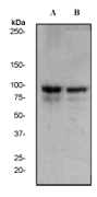 A. Western blot analysis on A) A431 and B) Raji cell lysates using anti- Stat3 RabMAb (Cat. APR11190G), 1:500 dilution. |