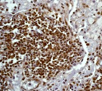 Signal transducer and activator of transcription 5 (Stat5) functions both in signal transduction and activation of transcription. It has been found that cytoplasmic Stat5 is translocated to the nucleus in response to phosphorylation. Stat5 is tyrosine phosphorylated in response to IL-2, IL-3, IL-7, IL-15, GM-CSF, growth hormone, prolactin, erythropoietin and thrombopoietin (1,2). Tyrosine phosphorylation is required for DNA-binding activity and dimerization. Serine phosphorylation is also required for maximal transcriptional activity. NCoA-1/SRC-1 acts as a coactivator for both the a- and b-isoforms of Stat5 (3).