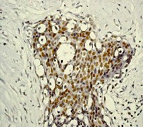 B. Immunohistochemical analysis of paraffin-embedded breast carcinoma using anti-Phospho-Stat5 (Y694) RabMAb (Cat. APR10256G). |