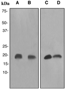Western blot analysis on (A) HeLa, (B) human spleen, (C) SH-SY5Y and (D) Jurkat cell lysates using anti-Stathmin RabMAb (Cat. APR13564G).
