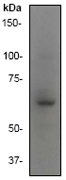 A. Western blot analysis on Jurkat cell lysate using anti-Tec RabMAb (Cat. AMM08155G) 1:10,000 dilution
