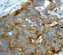B. Immunohistochemical analysis of paraffin-embedded human ovary carcinoma using anti-Tec RabMAb (Cat. AMM08155G). |