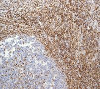 Immunohistochemical analysis of paraffin-embedded human tonsils using anti-TorC3 RabMAb (Cat. AMM05439G). |
