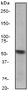 A. Western blot analysis on THP-1 cell lysate using anti-TPH1 RabMAb (Cat. APR10517G), dilution 1:500