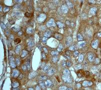 B. Immunohistochemical analysis of paraffin-embedded human adenocarcinoma of uterus using anti-Tuberin RabMAb (1824-1) |