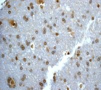 B. Immunohistochemical analysis of paraffin-embedded human brain tissue using anti-UBC9 RabMAb (Cat. APR10630G). |