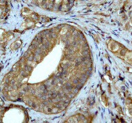 B. Immunohistochemical analysis of paraffin-embedded human prostate adenocarcinoma using anti-Ubiquitin (C-term) RabMAb (Cat. APR13901G). |