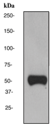 A. Western blot analysis on Human Plasma using anti-VDBP RabMAb (Cat. APR10739G), dilution 1:20,000 |