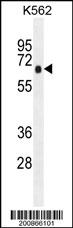 PRKAA1 Antibody (Cat. APR10912G) western blot analysis in K562 cell line lysates (35μg/lane).This demonstrates the PRKAA1 antibody detected the PRKAA1 protein (arrow). |