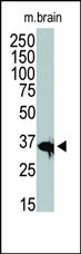 The anti-HDAC11 Pab (Cat. AMM08573G) is used in Western blot to detect HDAC11 in mouse brain tissue lysate.